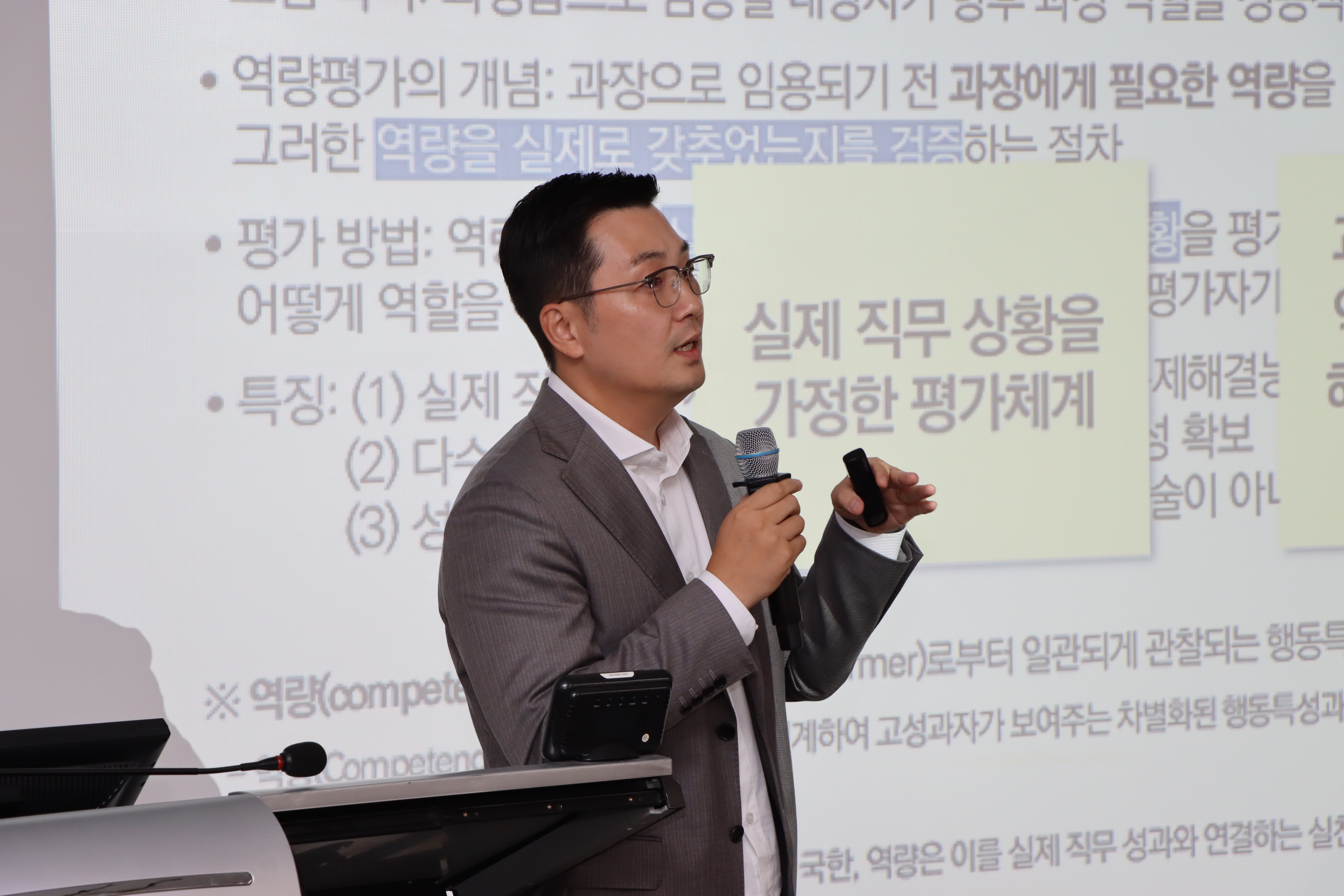 ▲ [우수 HRD 사례] 국가인재원 왕영민 교수가 '관리자역량 입문과정' 신설에 대한 소개를 하고 있다.