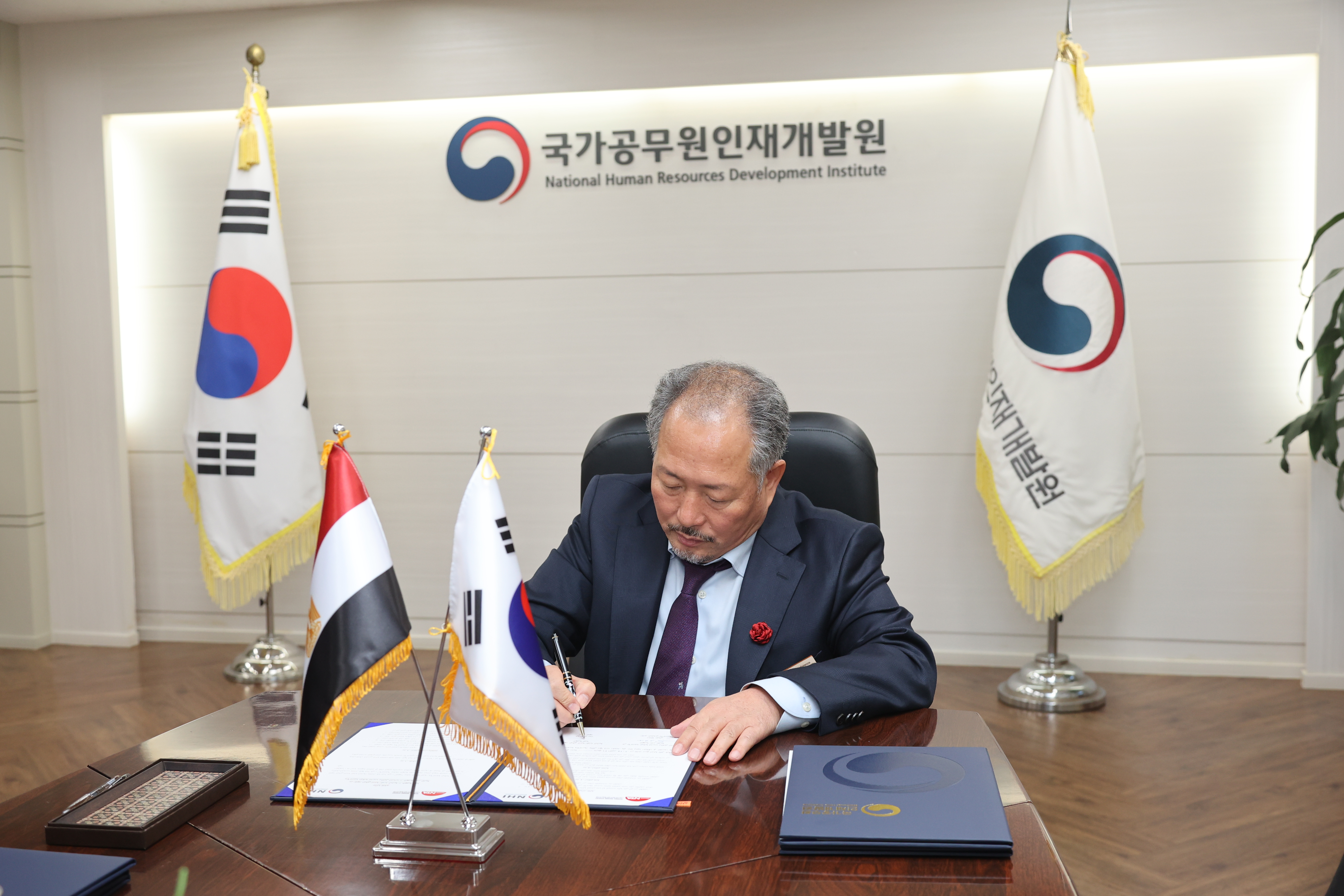 임채원 국가공무원인재개발원장은 지난 10월 31일 국가공무원인재개발원 과천 분원에서 국가공무원인재개발원-이집트 국가인력개발원간 공공부문 인적자원개발 협력을 위한 양해각서(MOU)에 서명하였습니다.